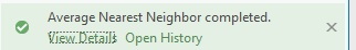 Doing so will take you to the results panel, where you will find the results of your Average Nearest Neighbor calculation under the operation’s Messages tab.