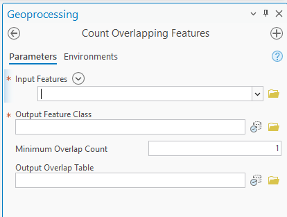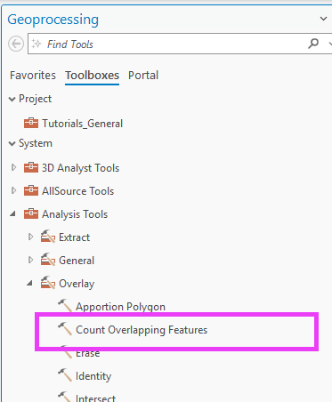 the Count Overlapping Features tool within the Geoprocessing Pane’s toolboxes