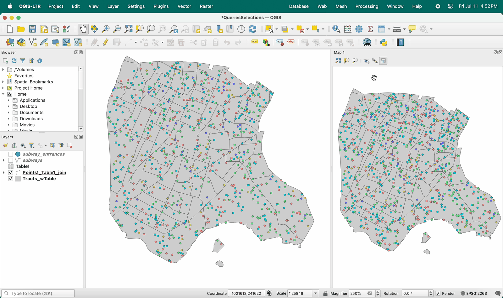 This tutorial demonstrates how to add a secondary map view, allowing you to view the same map canvas at different scales and locations side-by-side.