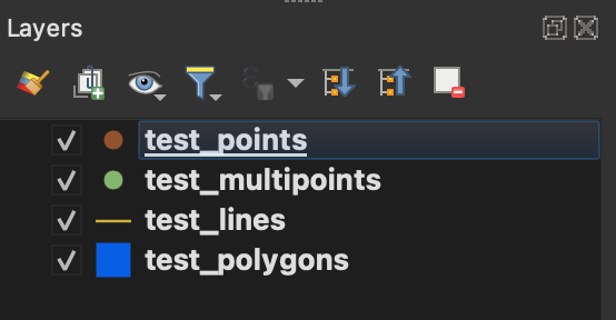 The resulting datasets will appear “empty” because they do not include any features (yet). As a result, you will see the new layers in your layer’s panel but they contain no features that would appear in your Map View.