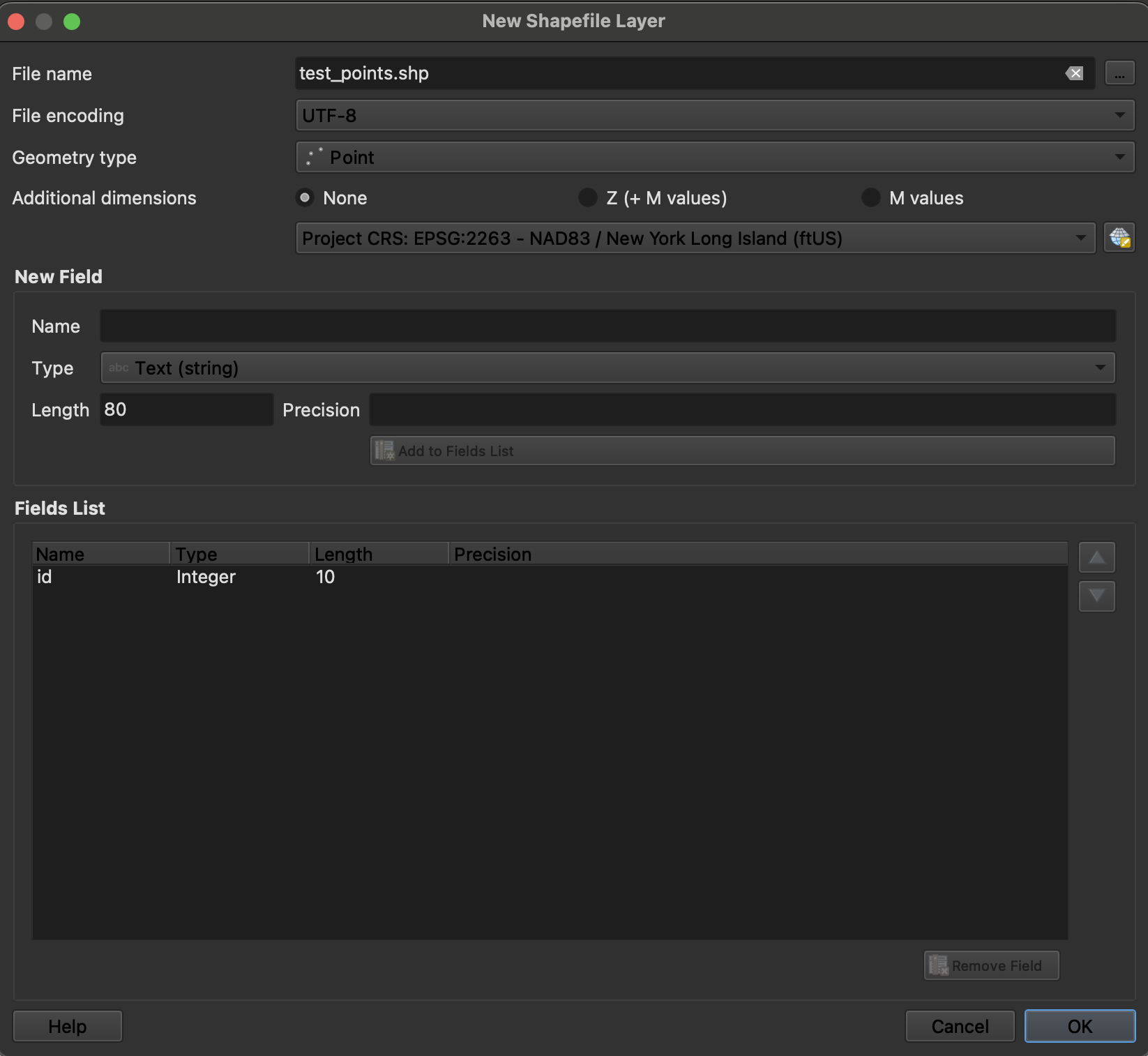Additional Dimensions: You can specify whether your dataset will include Z and M Values (dimensions).