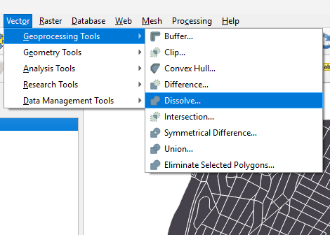 the Dissolve tool within the Vector geometry tools in the Processing Toolbox