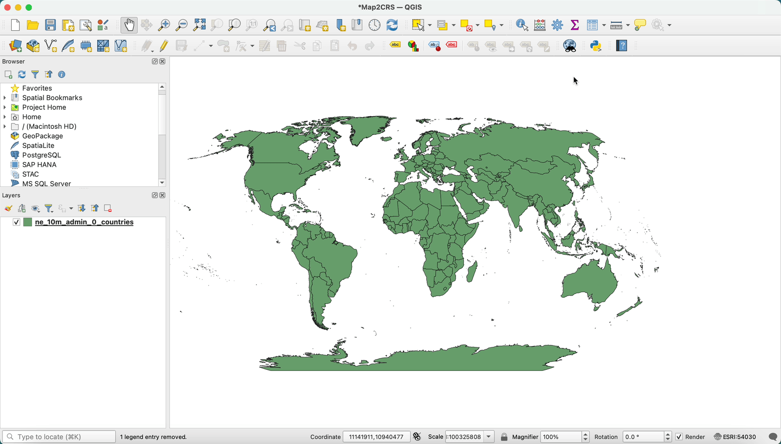 The demonstration below reprojects the “Admin 0 - Countries” dataset into the Robinson projected CRS using the following steps.